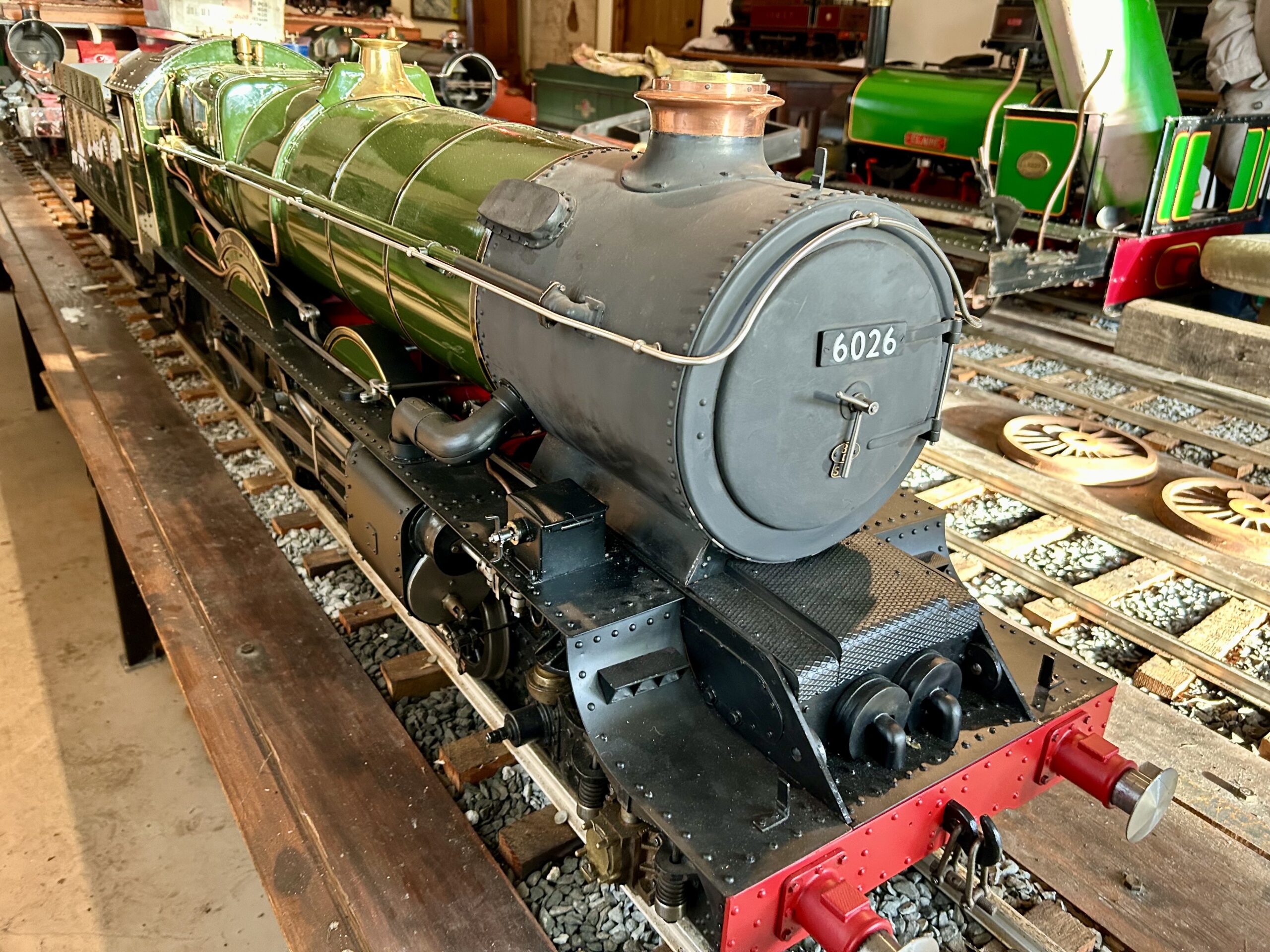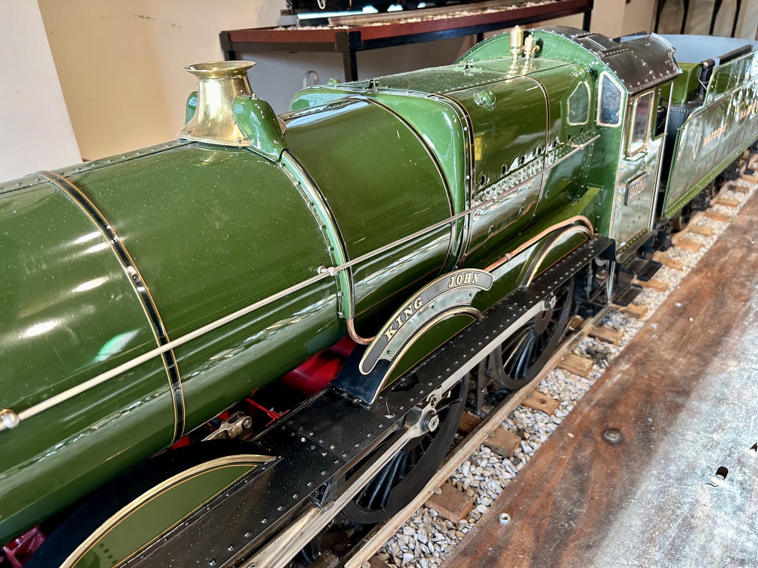 The engine has enjoyed one ownership since new and has been run at the late, great Garden and Woodland Railway, Echills Wood Railway and other railways before semi-retirement at the owners private track. Proving a little to big for such a line, the engine has been retired following a lubricator issue. Since then, it has been overhauled by a local model engineer (himself a serial model maker) and lastly repainted into late 1940s BR/GWR transitional livery, making it a little bit more unique than other Kings we have seen.